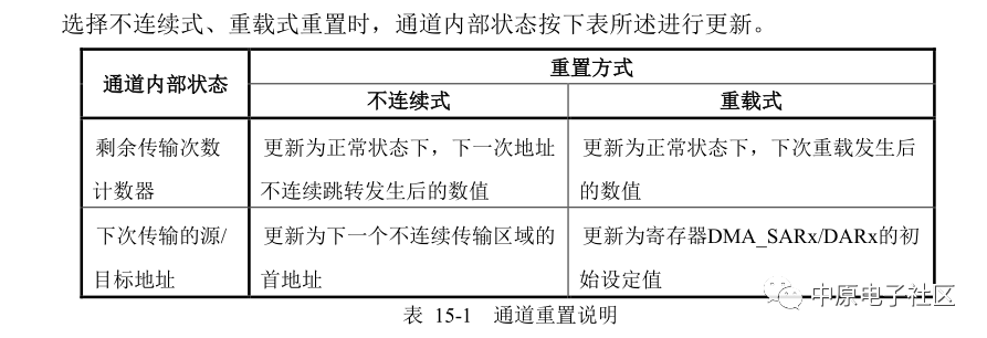 不少人在使用华大单片机HC32F4A0的时候有这样一个需求,那就是使用DMA搬运的时候,希望能够有一个重复的循环过程,毕竟刚接触到这款单片机的时候,一些工程师发现在设置DMA搬运次数的时候会出现一定情况下,搬运次数达到设置值,然后DMA搬运就停止了。 虽然在这个时候会产生一个中断,但是需要在中断中再重新使能DMA的搬运,那么当采样速率较低的时候这种配置方法是没有问题的。 但是在采样速率达到一定的速度以后就有可能在中断中重新开启DMA出现数据丢失的风险,那么在这种情况下,就希望单片机硬件可以自己进行一个循环采样搬运的过程。 那我们知道一般情况下DMA都是配合外设所使用的,比方说ADC用定时器触发,然后再用DMA进行一个搬运的过程,如果设置搬运次数为0,也就是按照手册的话不停的搬运,但是这样的话不会产生中断,如果设置为有限次数的搬运会产生中断,又需要重新使能DMA的搬运。 这个时候其实就可以使用DMA传输的一个链表功能,那么以厂家提供的例程为例,那么实际上就是将我们的源地址设置成15个重复的地址空间。 然后采样15个数之后就会触发一个DMA设置的重置功能,而当这个功能触发之后,原地址又会回到最初的位置上,从而实现一个连续的循环采样模式,如果需要想要具体的源代码和头文件可以私信我们。 最后,我们会不定期更新关于华大单片机开发方面的实用干货,欢迎点赞关注! 平台微信公众号:Zye-BBS 一个服务我们河南电子人的电子技术平台 中原电子社区——为中原电子行业的繁荣而努力 有技术问题请扫一扫下方二维码